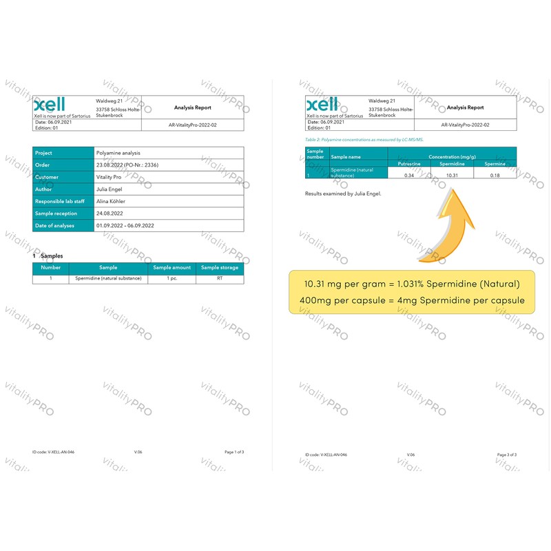 •  Third-party tested: Your safety is our main priority. The Spermidine contained within your capsules has been independently verified by a third-party laboratory to ensure purity & the highest quality. Our vegan-friendly formula doesn't contain GMOs, artificial colours, preservatives, or flavours