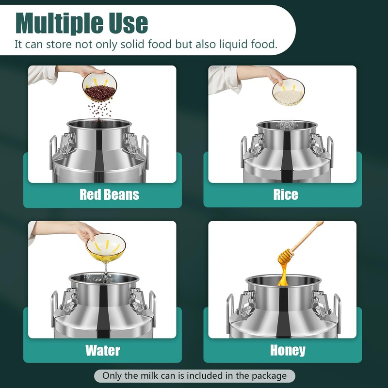 - 【Multi-functional Use】: This stainless steel milk barrel is capable of storing both wet and dry items, including milk, oil, rice, and groceries, catering to a wide range of your storage requirements. Besides serving as a storage container, its superb sealing capabilities render it an ideal transport bucket, offering you additional versatility in its application.