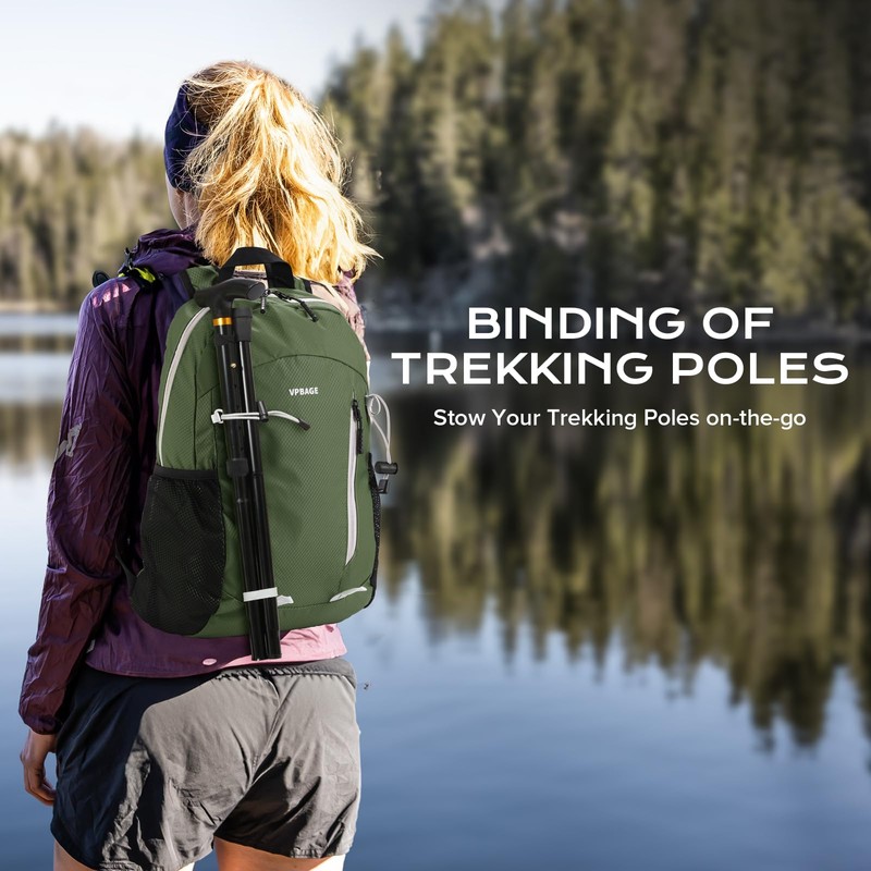 VPBAGE - Mochila de senderismo impermeable de 15 l, mochila pequeña para viajes al aire última intervensión, paquete de día ligero con trabillas para herramientas, Verde militar, Mochila de senderismo