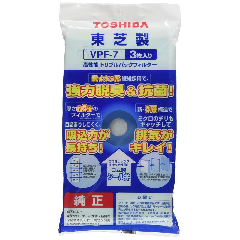 東芝 高性能トリプル紙パックフィルター 純正 掃除機 クリーナー用 VPF-7