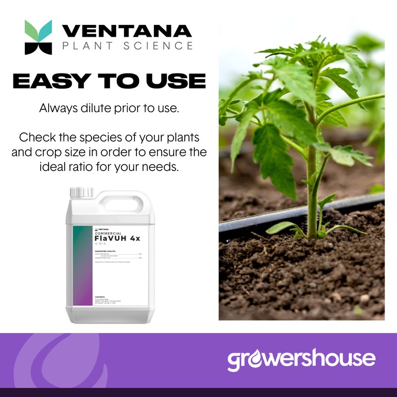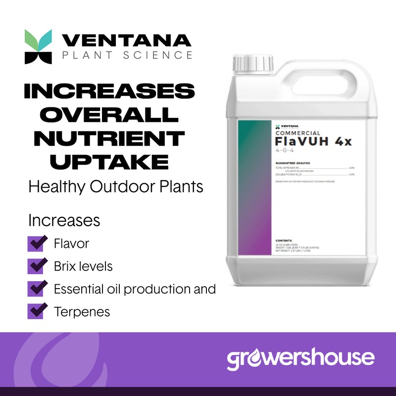 - STRONGER, HEALTHIER PLANTS - Ventana Plant Science FlaVUH 4-0-4 is an amino acid monomer and amino acid polymer additive essential for flowering plants and vegetables. Derived from organic oyster shells. Available in 4 oz, 1 qt, 1 gal, 2.5 gal, 55 gal.
