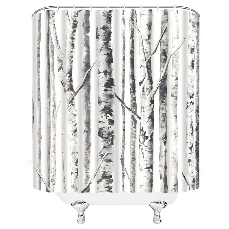 VPUPCN Birch Trees Shower Curtain Abstract Gray White Mottled Trunk Tree Bran...