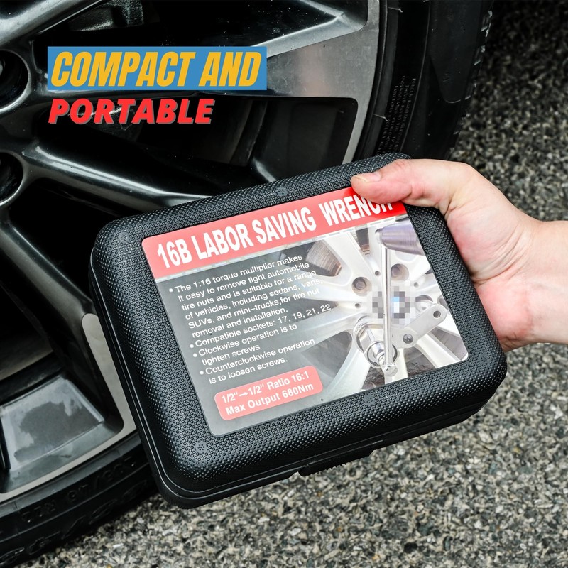 Lug nut remover upgraded with a 8-point socket adapter, more labor-saving, applicable to various passenger and light-commercial vehicles, such as sedans, vans, SUVs, mini-buses, mini-trucksDrive torque multiplier wrench features a gear ratio of 1:16 to offer a torque output of 680NMTorque multiplier set made from quenched 40Cr alloy steel with chromeplating, ideal for sedans, vans, SUVs, mini-bus and mini-trucksLug nut wrench kit comes with 3 sockets (17/19/21mm), capable of removing and installing various lugnutsWrench sockets set comes with a sturdy case, easy to carry aroundSPECIFICATION-Material: quenched 40Cr alloy steel with chromeplating-Gear ratio: 1:16-Max torque output: 680N/M-3 sockets: 17mm/ 19mm/ 21mm-Case Size: 8.3*6.3*2.8in-Weight: 4.9 lb.PACKAGE-1 x 1/2 Torque Multiplier Lugnut Wrench-1 x Hand Crank Handle-3 x Cr-v Socket-1 x Carry Case