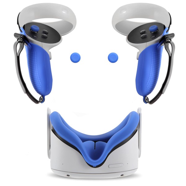 - What You Get - 2Pcs VR Silicone face Cover(Blue+Black),1 Pair VR Controller Grip Cover(Blue), 1 Pair Rocker protective cap(Blue)