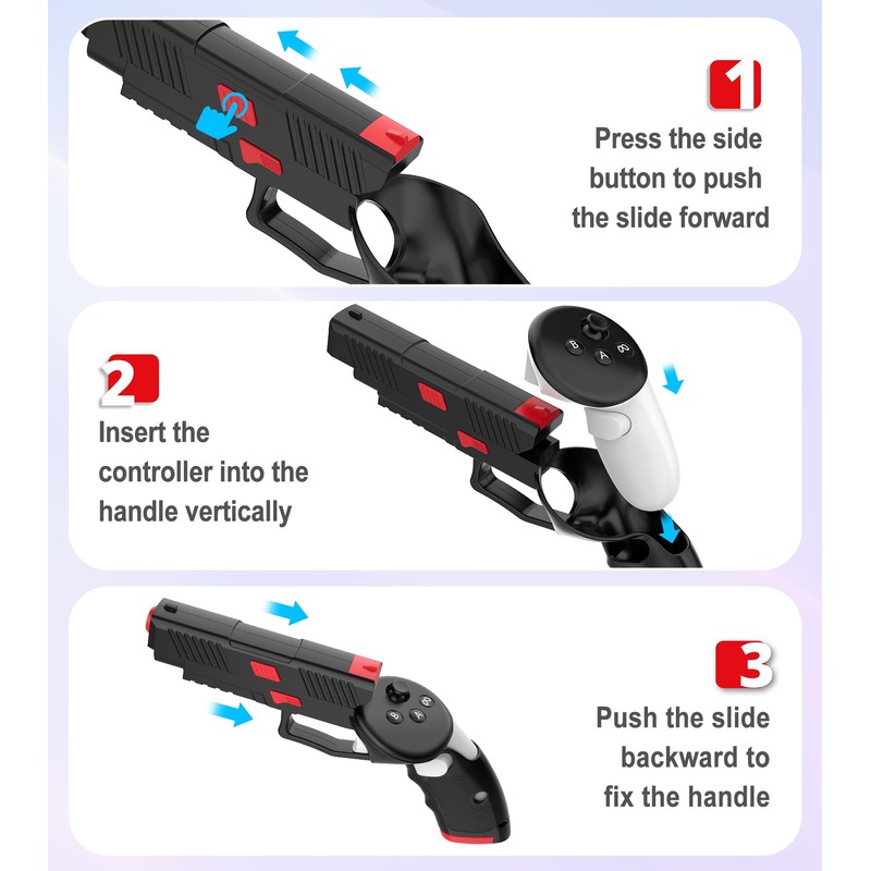 • Quick and Hassle-Free Installation: Setting up the grip is quick and easy. Simply press the side button to adjust the grip, insert your Quest 3 controller, and lock it into place. In just a few seconds, you’ll be ready to into your VR gaming experience.