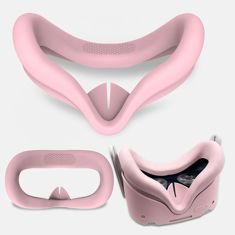 VR Cover Accessories Set Compatible with Meta Quest 2, MLemonVR Silicone VR Shell, Controller Grips & Face Cover, Button Caps, Lens Cover + Glasses Cloth Set for Quest 2 (Pink, for Quest 2)