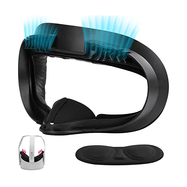 • 【Resilient | Vent | Soft Facial Interface Bracket for Quest 2】Based on the original Quest 2 foam interface bracket, this VR facial interface bracket for oculus quest 2 add ventilation and exhaust holes so heat will be easily exported so to protect the device. Soft PU leather and the foam inside makes the bracket soft and well fit to any face shapes, giving a comfortable feeling. It give a possibility to wear meta quest 2 when you have to wear glasses.