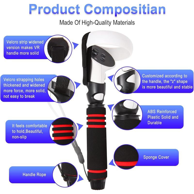 VR Handle Attachments for Oculus/Meta Quest 2 Handles,2 in 1 Upgraded Multipurpose VR Dual/Long Stick Handle Extension Grips for Quest 2 Controllers Playing BeatSaber
