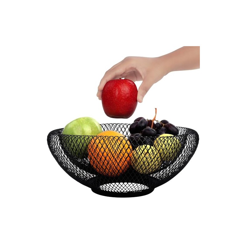 VR7 Black Mesh Fruit Bowl Stainless Steel Large Table Decor Fruit Storage Wire Metal Mesh Baskets for Kitchen