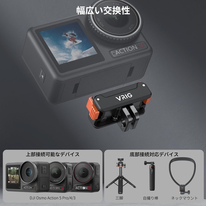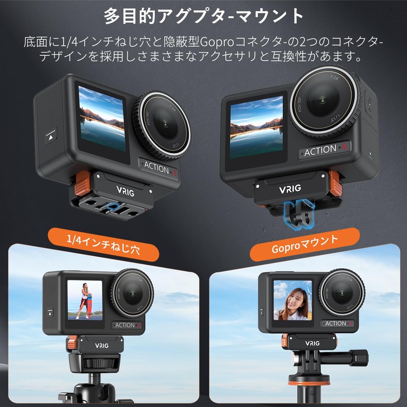 VRIG Magnetic Quick Release Adapter Mount for DJI Osmo Action 5pro 4 3, Magnetic Action Camera Mount with 1/4 Screw Hole, Foldable Adapter, Universal for DJI Osmo Action 5pro/4/3, Accessories, Tripod