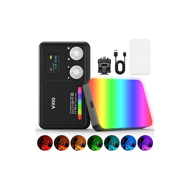 VRIG 撮影用ライト RGB LED ビデオライト 小型 撮影照明ライト 撮影ライト ポータブル 359色RGBモード 2500-9000K 無段階調光 3000mAh USB充電式 1/4”仕様 120°角度調節 LCDディスプレイ CRI95+高演色性 持ち運び便利 アクションカメラに適用 動画撮影 写真撮影 YouTube Tiktok ビデオ照明