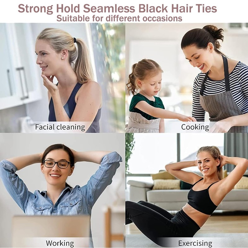 Vrose Flosi Vrose Flosi 100PCS No Damage Hair Ties For Women Girls Men Kids Toddler - Soft Seamless Hair Ties For Thin & Fine Curly Hair - Black Rubber Bands For Hair No Pull Ponytail Holder