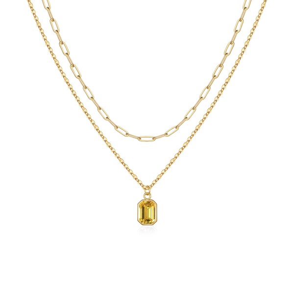 Vrsilver Birthstone Necklace for Women, Citrine Necklaces for Women November Birthstone Necklace for Girls Birthstone Jewelry for Girls Birthday Gifts for Women Girls Layered Gold Necklaces for Women