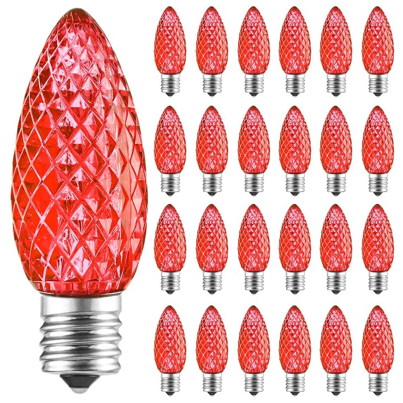 Vruxuri 25 Pack C9 LED Christmas Light Bulbs, C9 Replacement Bulbs for Christmas String Lights, Shatterproof Dimmable C9/E17 Base Sockets, Red