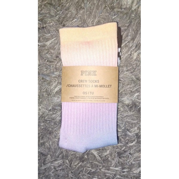 VS PINK 2pk crew Socks BRAND NEW rainbow tye dye & black striped logo