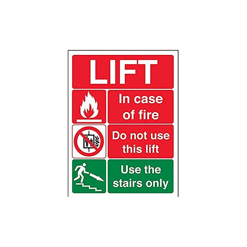 - Portrait Orientation. Sign reads "Lift. In Case Of Fire. Do Not Use This Lift. Use The Stairs Only"