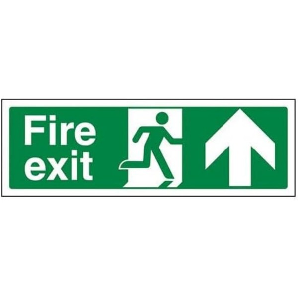 VSafety Fire Exit Arrow Up Sign - Landscape - 300mm x 100mm - 1mm Thick Hard Plastic