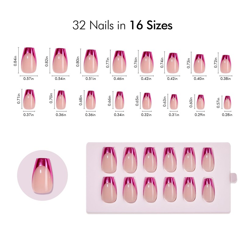 - **More Sizes & Accessories Included**: Get the perfect fit with 32 nails in 16 sizes! Each kit comes with everything you need, including pre pad, UV Cure Glue, VE nail glue, easy tab glue, a double-sided nail buffer, cuticle stick and nail match pad.