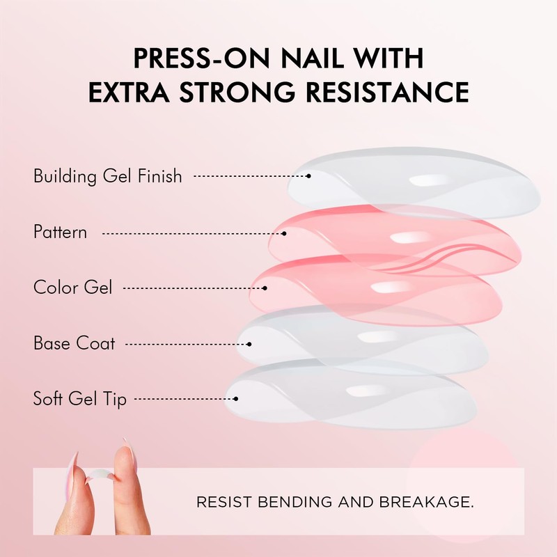 If you've been curious about press-on nails but worry that regular nail glue doesn't hold up well for daily use, our UV Cure Nails Series is the perfect solution! Our UV Cure Glue Nails sets to a quality that rivals salon nails, providing a strong and stable hold. Plus, we also include nail glue that doesn’t require a lamp, so you can easily customize your wear time based on your needs. Each nail tip is crafted using the same meticulous techniques as salon-quality nails, utilizing materials that are slim, durable, and comfortably molded to fit your natural nail shape without breaking.