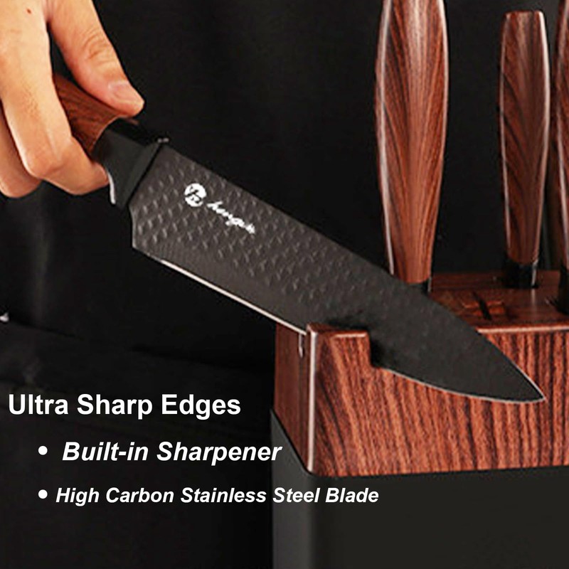 - Designing a Knife Set with the Perfect Feel: Comfortable and durable, ergonomic handle for comfort in long use, knives set uses PP & wood for secure grip, even wet, exceptional robustness, making it the ideal cooking knife set