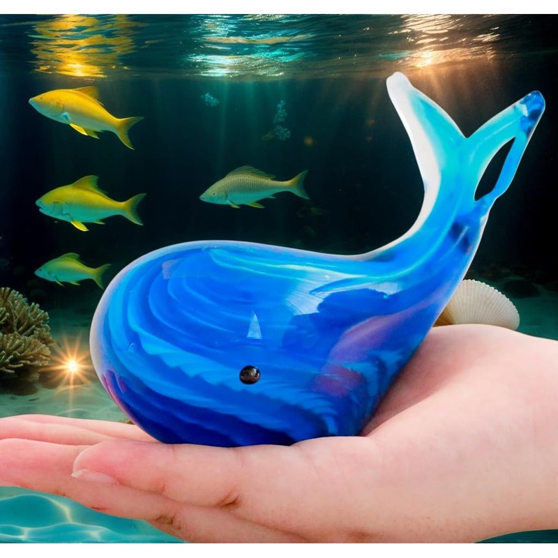 vskikris Blue Glass Whale Figurine Collectibles Hand Blown Art Glass Whale Sea Animal Paperweight Home Table Decor Gifts for Daughter Women Mom Gifts
