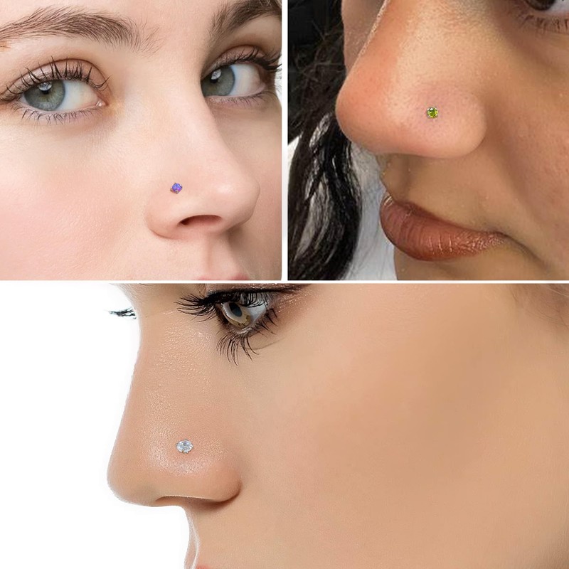 - [SAFETY MATERIAL]: Nose Rings Studs Made Of 316L Surgical Steel and Shiny Cubic Zirconia Opal, Smooth Polished Surface, Safe And Durable. Comfortable to Wear for a Long Time. Easy to Insert and Take Off.
