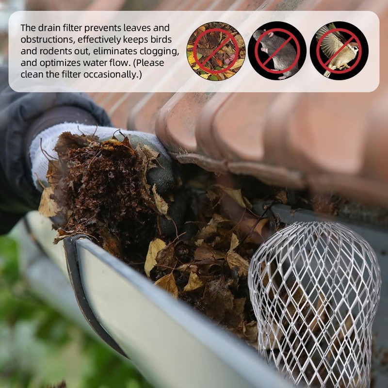 - 【Mesh Design for Effective Filtration】The mesh downspout filter effectively prevents leaves, stones, dirt, and branches from entering your gutters or drainpipes. It also keeps out animals and insects, effectively preventing blockages and extending the life of your pipes. A very practical pipe protection filter.