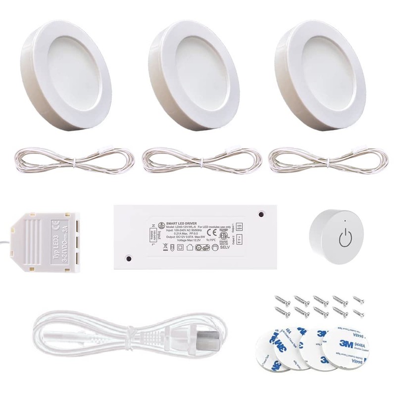 VST Under Cabinet Lighting 12V 2W/pc, Wireless Dimmer Switch, Recessed or Surface Mount Wiring Puck Light for Kitchen,Wardrobe, Showcase Display 3 Pack White 4000K