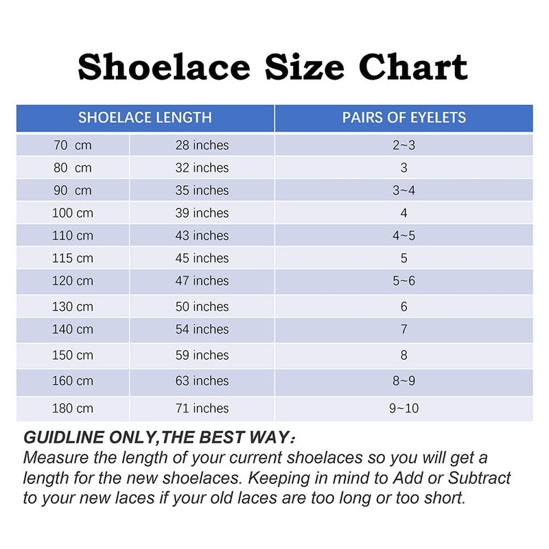 THE BEST WAY: Measure the length of your current shoe laces, so you can get a length for the new shoelaces. Keeping in mind to Add or Subtract to your new laces if your old laces are too long or too short.