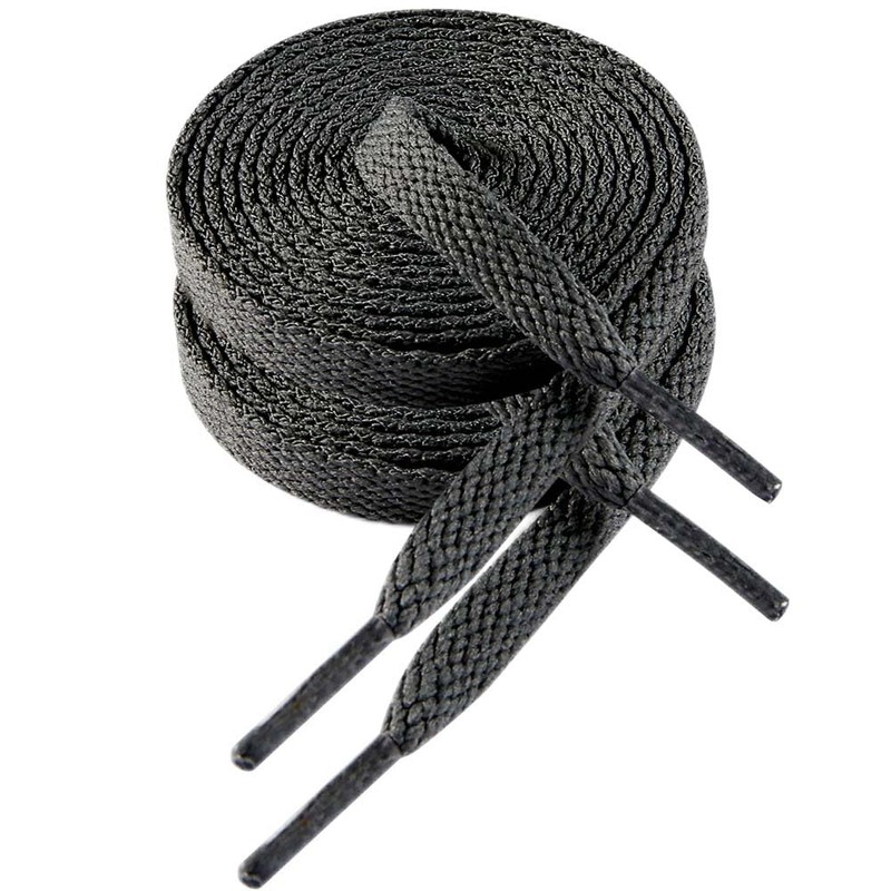 - SHOE STRINGS STYLE: Approximately 8mm wide flat dark grey sneakers shoelaces - Polyester - Includes 2 pairs (4 laces) flat dark grey shoestrings.