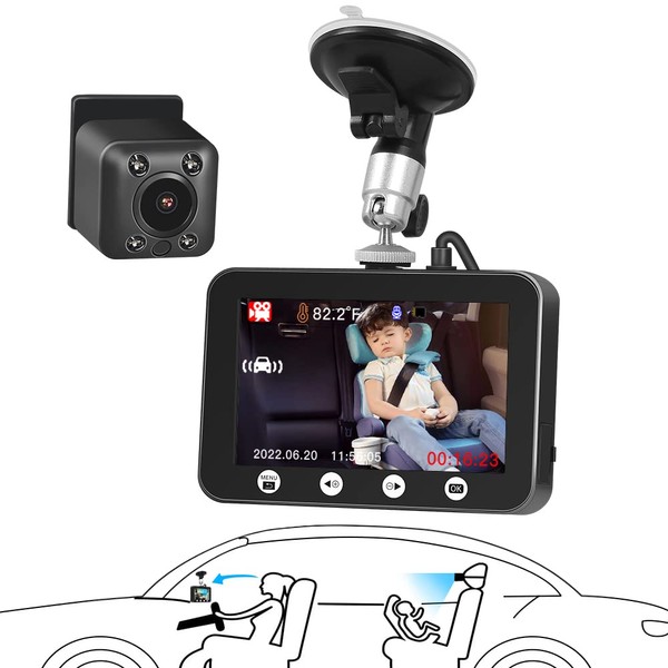 VSYSTO Baby Car Mirror,4.3" Screen Baby Car Recorder Temperature Sensor Infrared Night Vision-View Infant in Rear Facing Seat, Aimed at Baby Easily Observe and Record the Baby’s Move (4.3 Inch Screen)