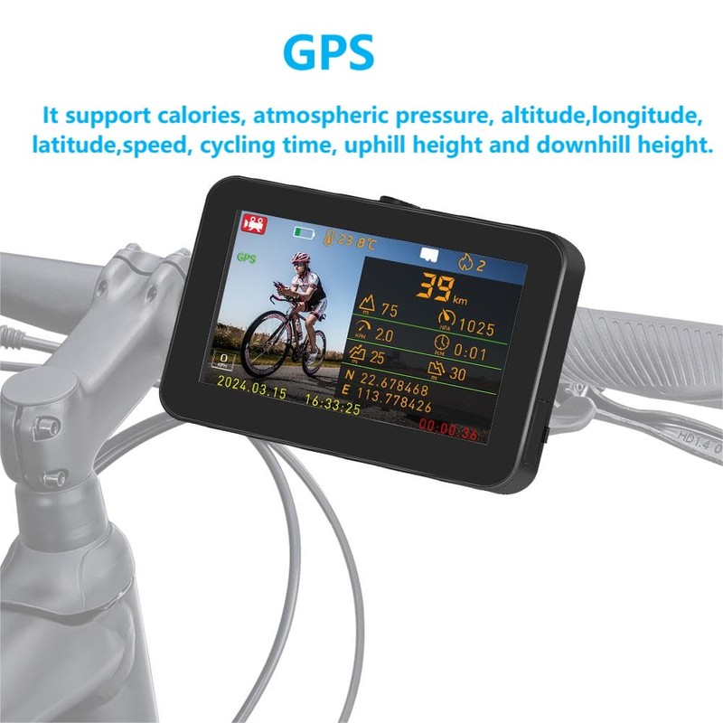 - 【GPS】: soporta calorías, presión atmosférica, altitud, longitud, latitud, velocidad, tiempo de ciclismo, altura cuesta arriba y altura cuesta abajo. Ayuda a rastrear el gasto de calorías, predecir el clima, conocer la ubicación precisa, controlar la velocidad, analizar el rendimiento del ciclismo y comprender el terreno.