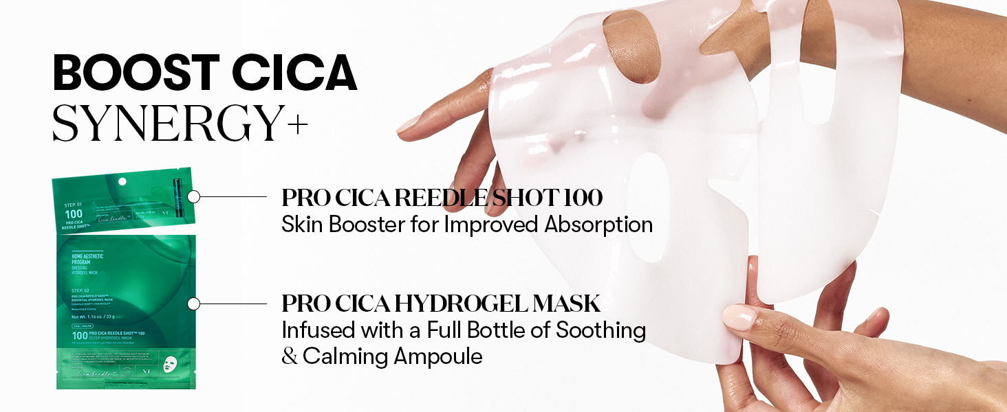 - How to Use: After cleansing, apply a moderate amount of STEP 1: Pro Cica Riddle Shot® 100 to the face. Gently massage until absorbed. Once absorbed, open the pouch and remove the film from the lower hydrogel mask. Align around the mouth and apply. Then remove the upper mask film and align around the eyes. After 20–40 minutes, remove the mask and gently pat the remaining essence into the skin. TIP: For enhanced results, wear the hydrogel mask for 2–3 hours.