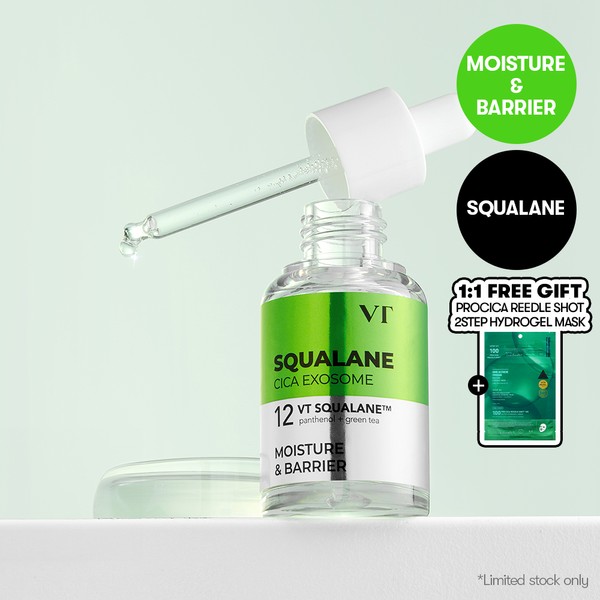 This moisturizing ampoule is complete with special VT solution that can deliver effects and efficacy of plant-based squalane into skin. The soothing ingredients extracted from Centella Asiatica through VED technology are made into nano size exosome to give firm and strong soothing effect into skin. Contains panthenol to improve skin barrier, and Camellia Sinensis Leaf Extract to help with water-oil balance.