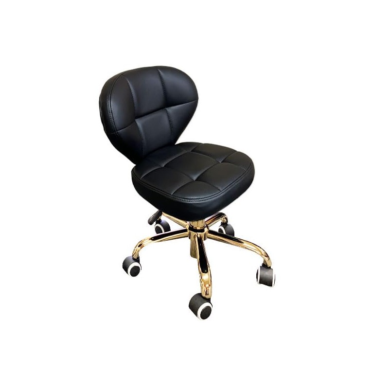 VTD Bar Stool with Golden Base Modern Luxury Style Spa Salon Pedicure Short Chair Adjustable 13.5'' to 15.5'' Height Upgraded 2025 in Black/Cappuccino/White/Grey/Dark Brown (Black)