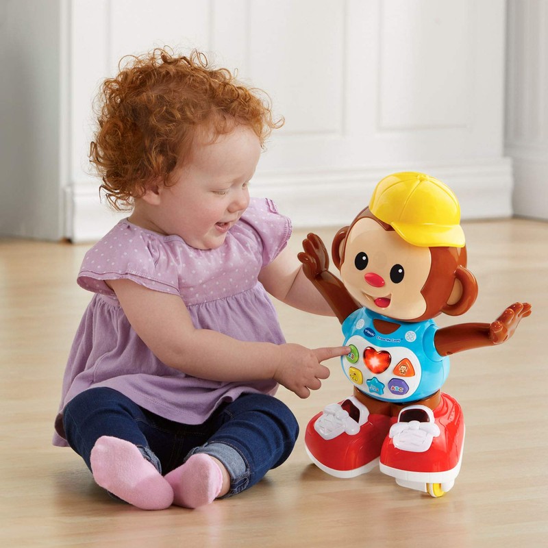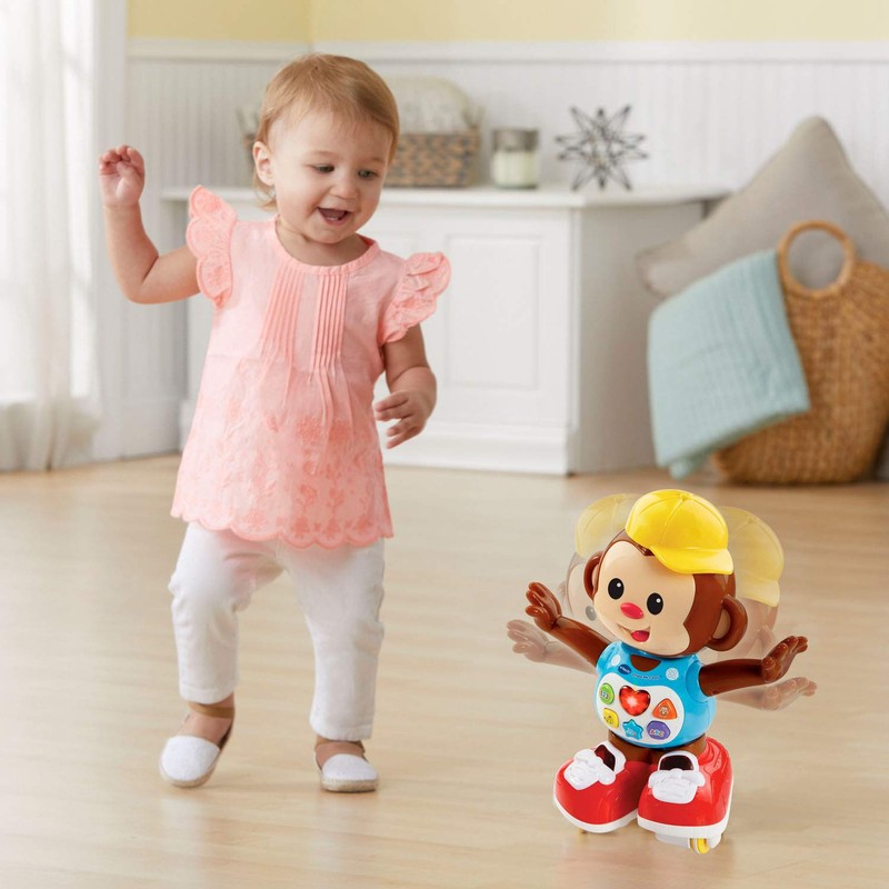 - The playful monkey's moves encourage your baby to dance and crawl after him as he rolls across the floor