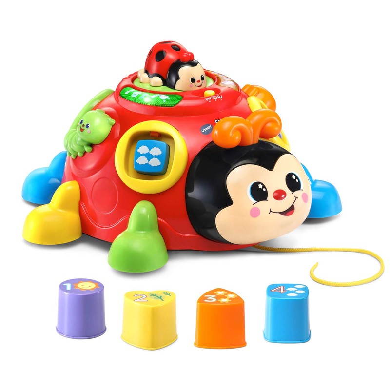 - Crazy, wobbly ladybug pull toy and bug friends teach shapes, colors, numbers and nature