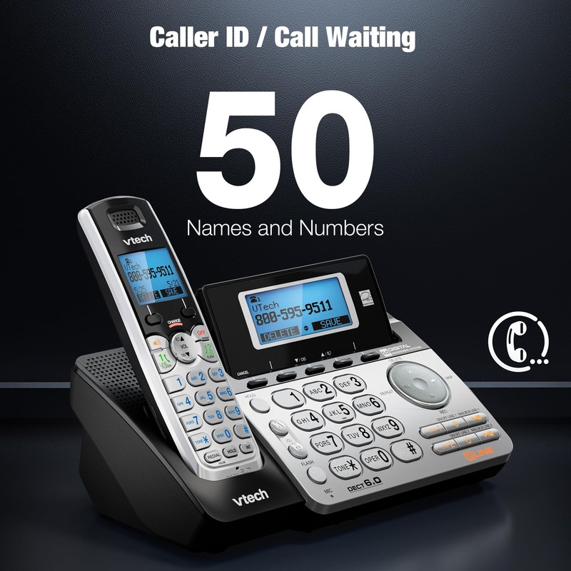 VTech DS6151-2 2 Handset 2-Line Cordless Phone System for Home or Small Business with Digital Answering System & Mailbox on Each line, Silver