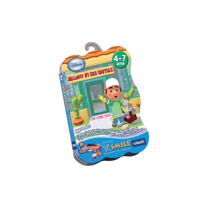 - Product description: V.Smile- educational game "Manny and his tools" - 4 to 7 years. To discover spelling, vocabulary, shapes, colors. Speaking: with the real voice of Manny. 2 modes: "Educational Adventure" and "Discovery Workshops". 2 levels of difficulty, 2 player mode.