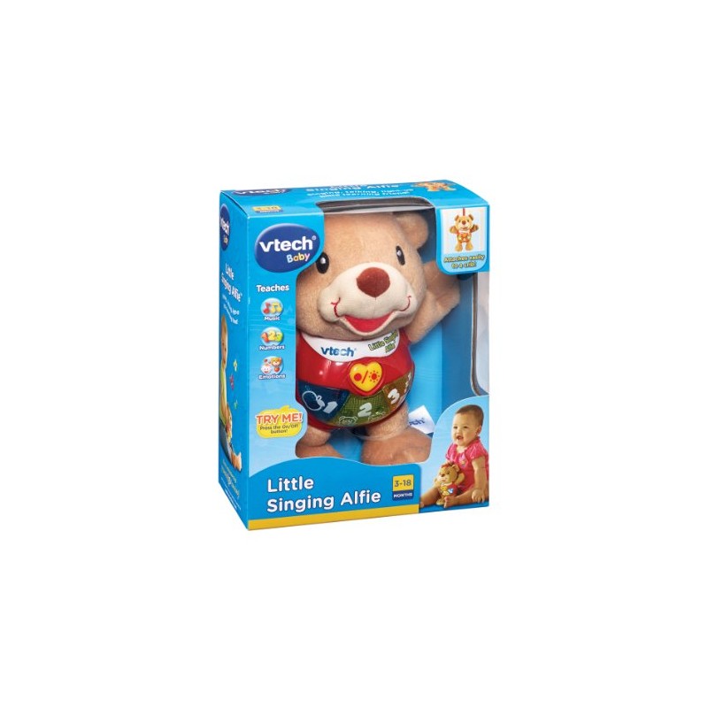 - Press the three light-up buttons on Little Singing Alfie's tummy to hear fun phrases and sound effects that teach emotions, numbers and counting with popular tunes