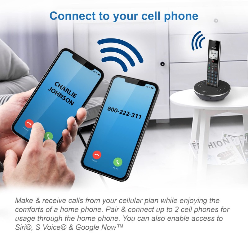 - [Make & receive cellular calls using Bluetooth Connect to Cell feature] - Make and receive calls from your cellular plan while enjoying the comforts of a home phone. Pair up to 2 cell phones and connect 2 cell phones for use with landline calls. Access your mobile smart assistants such as Siri, S Voice and Google Now using this phone system.