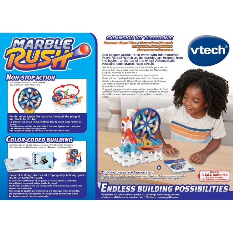 - Box contents: 1 x Vtech Marble Rush extension motor Ferris wheel / German version / age: 4-12 years / 3 x AAA demo batteries / compatible with all Marble Rush sets / item no. No.: 80-559549