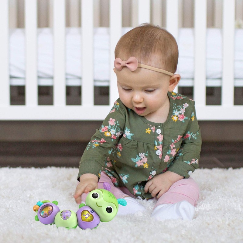 - Intended for ages 3+ months; requires 3 LR44 batteries; batteries included for demo purposes only; new batteries recommended for regular use