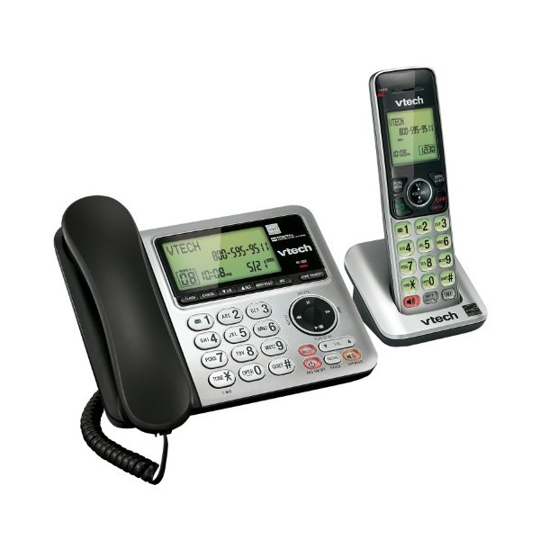 VTech CS6649 DECT 6.0 Expandable Corded/Cordless Phone with Answering System and Caller ID/Call Waiting, Silver/Black with 1 Handset