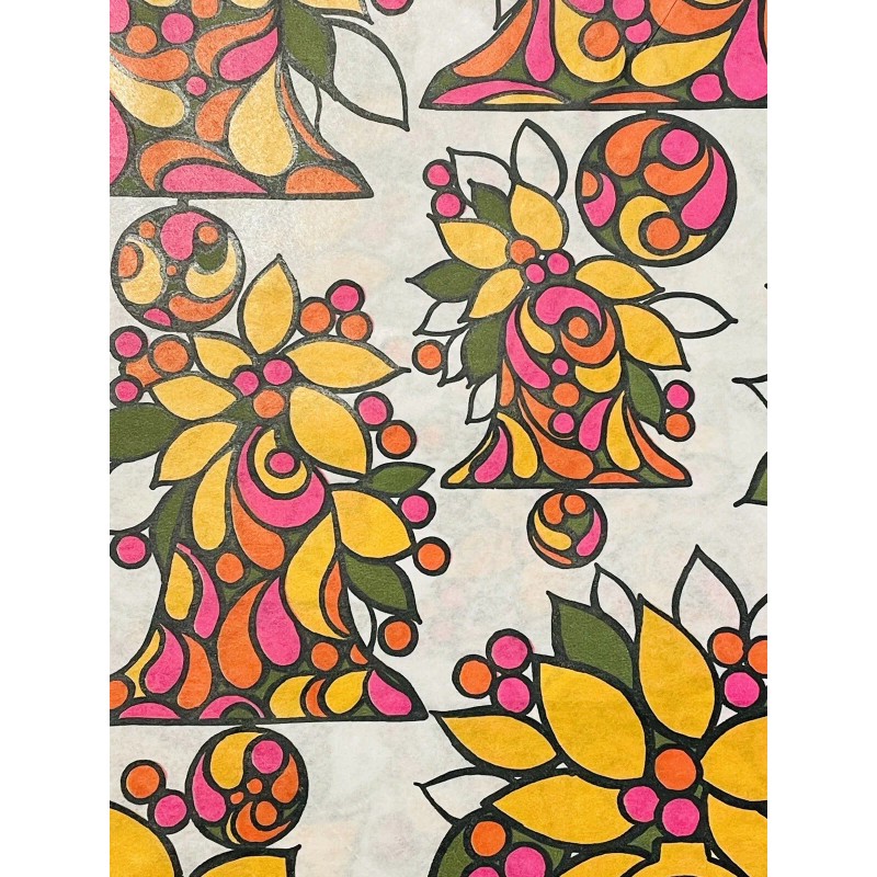 VTG CHRISTMAS WRAPPING PAPER GIFT WRAP PSYCHEDELIC FUNKY BELLS HOLLY 1960 NOS