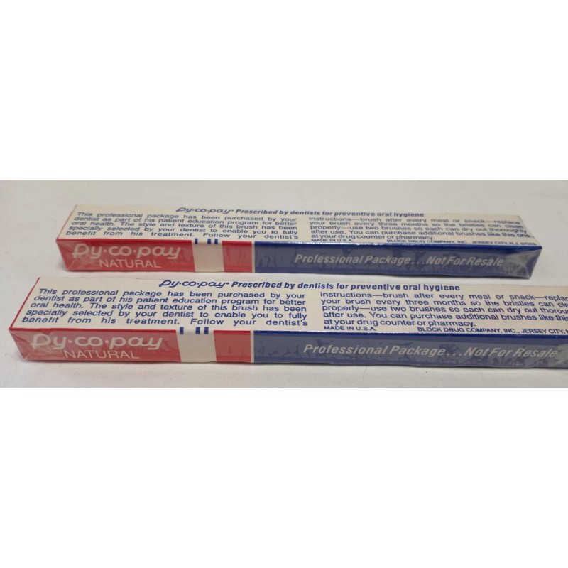 Vtg Py-co-pay Natural Toothbrushes Lot Of 2 Medium Natural Bristles Rubber Stimulator tip. Professional package. Colors vary. Toothbrush is 6.5 inches in length. MPN 1675 ss1