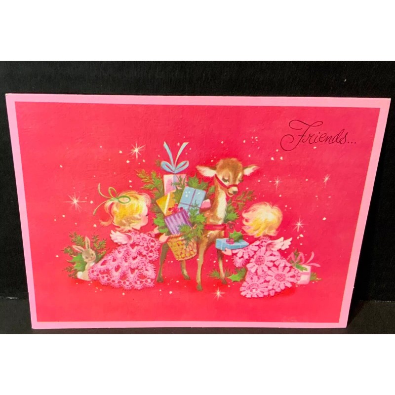 VTG Quality Crest Christmas Card UNUSED Blond Angels Loading Reindeer with Gifts