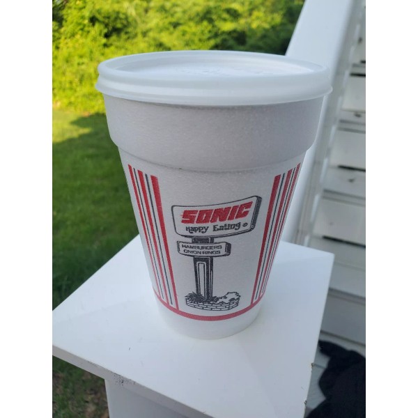 Vtg Styofoam 1980s 14 oz Cup Sonic Drive In Happy Eating Drinking Restaurant