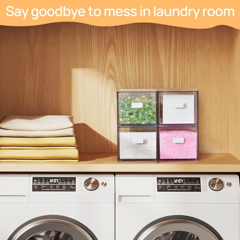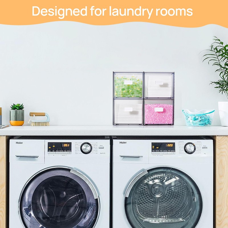 Vtopmart 2 Pack Dryer Sheet Holder and Laundry Pods Container,Clear Stackable Storage Drawers for Washing Powder, Scent Booster Beads, Color Catchers & Wool Balls, Ideal for Laundry Room Organization