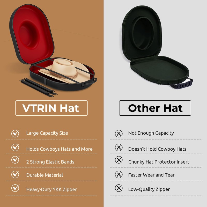 VTRIN Cowboy Hat Box for Travel, Crush Proof Western Hat Holder Storage, Fits Most Sizes, Up to 2 Hats, with Handle, Luggage Strap and Adjustable Shoulder Strap, Large